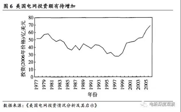 美國(guó)電網(wǎng)投資曾經(jīng)有三十年陷入低谷。美國(guó)輸電網(wǎng)投資自20世紀(jì)70年代以來(lái)一直處于停滯狀態(tài),且長(zhǎng)期滯后于電力需求和發(fā)電裝機(jī)容量的增長(zhǎng)。其中原因在于:①美國(guó)聯(lián)邦制下跨州輸電項(xiàng)目建設(shè)需要多個(gè)州的監(jiān)管部門同意,多個(gè)聯(lián)邦政府部門之間的協(xié)調(diào)難度較大,且行政審批程序復(fù)雜、耗時(shí)長(zhǎng),最終獲準(zhǔn)門檻高。②輸電網(wǎng)項(xiàng)目相較于其他投資項(xiàng)目,具有回報(bào)率低,建設(shè)周期長(zhǎng)等特點(diǎn),因而比較缺乏投資吸引力,所能籌集的輸電項(xiàng)目建設(shè)資金規(guī)模有限。③美國(guó)已經(jīng)完成了工業(yè)化、城鎮(zhèn)化,經(jīng)濟(jì)發(fā)展速度趨緩,電力需求也增長(zhǎng)緩慢,使得電網(wǎng)建設(shè)驅(qū)動(dòng)力不足,因而在20世紀(jì)中期完成迅速擴(kuò)張后開(kāi)始停滯。美國(guó)電網(wǎng)投資在1975-1999年逐年下降,平均每年下降8600萬(wàn)美元,直到2005年才恢復(fù)到1975年的投資水平。