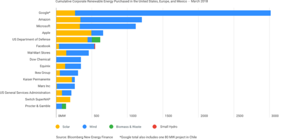 當(dāng)時(shí),谷歌是美國(guó),歐洲和墨西哥可再生能源的領(lǐng)先企業(yè)購(gòu)買者,當(dāng)時(shí)承諾風(fēng)能和太陽(yáng)能的發(fā)電量為2.6吉瓦。