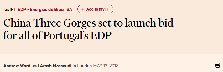 最近兩天,英國《金融時(shí)報(bào)》、路透社接連報(bào)道中國三峽集團(tuán)向葡萄牙電力集團(tuán)(EDP)發(fā)出收購要約一事,關(guān)注中國能源企業(yè)在歐投資和美國審查壁壘的問題。