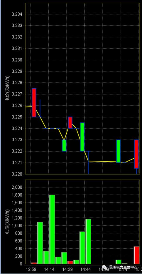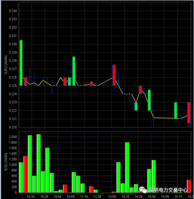 連續(xù)掛牌兩個(gè)階段(集合競(jìng)價(jià)和連續(xù)掛牌)共成交電量24927.7萬(wàn)千瓦時(shí),平均成交價(jià)0.22452元/千瓦時(shí),最高成交價(jià)0.2595元/千瓦時(shí),最低成交價(jià)0.22元/千瓦時(shí)。