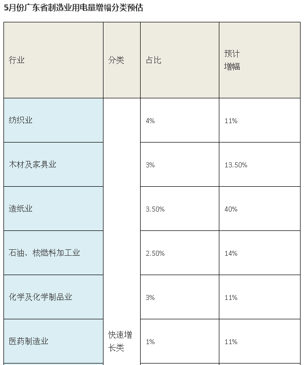 5月份區(qū)域用電預估:粵西地區(qū)工業(yè)用電增速或?qū)⒊?5%