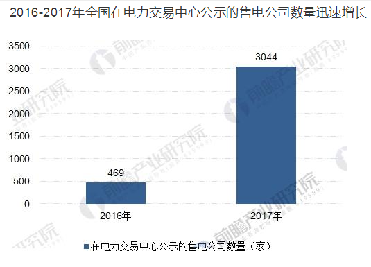 2016-2017年全國在電力交易中心公示的售電公司數(shù)量迅速增長