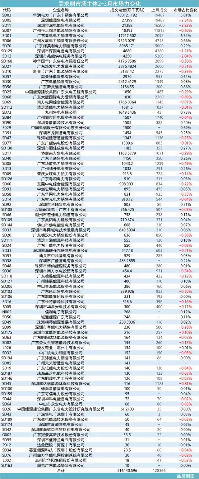繼二月份競(jìng)價(jià)華潤、深能源、深電能、恒遠(yuǎn)、兆能奪得需求方成交量的前五名之后,我們也關(guān)注3月的前五名是否發(fā)生了變化: