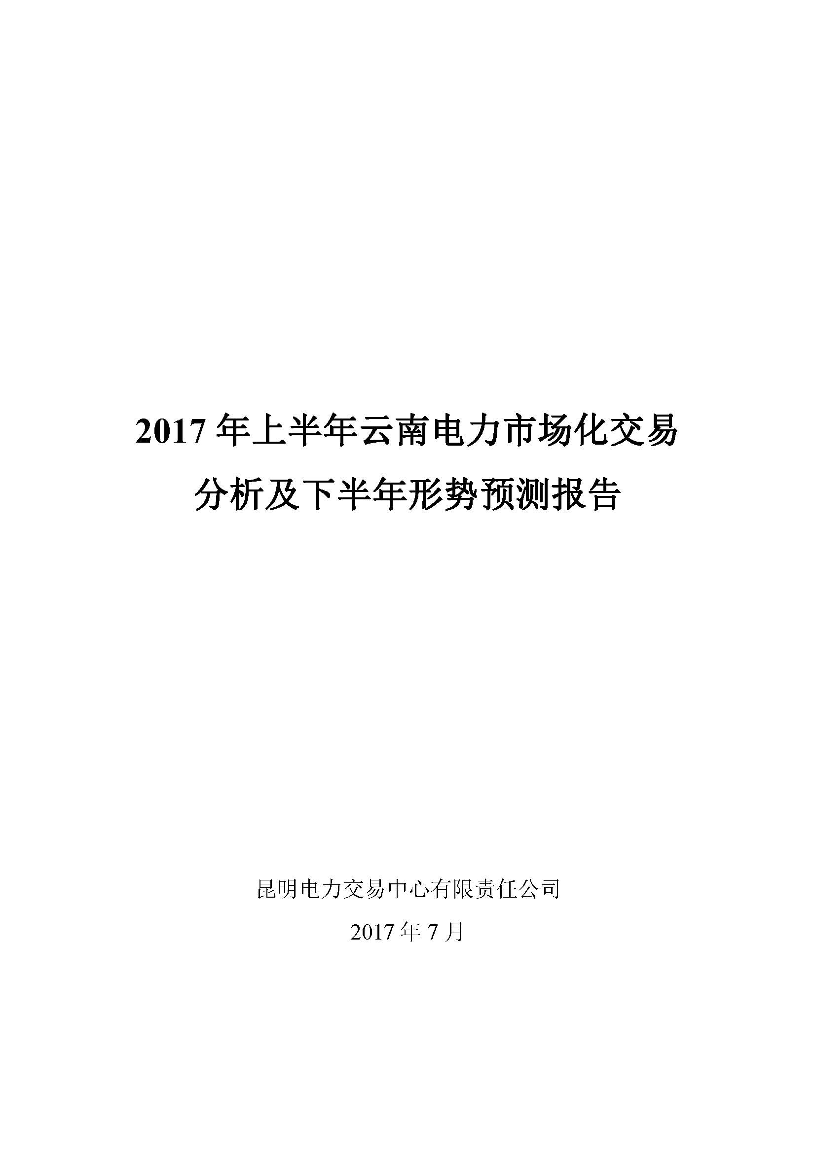 2017年上半年云南電力市場(chǎng)化交易分析及下半年形勢(shì)預(yù)測(cè)報(bào)告
