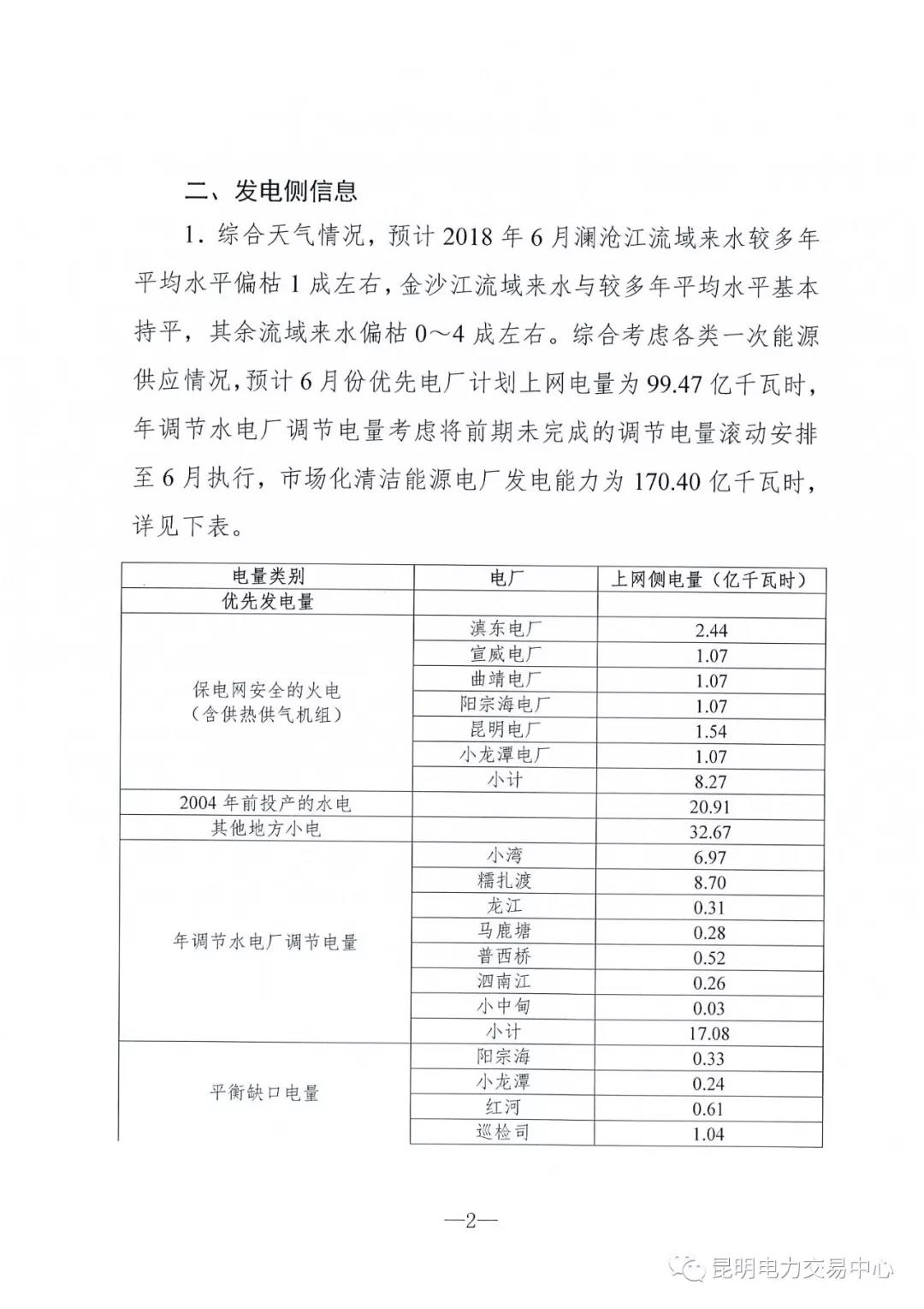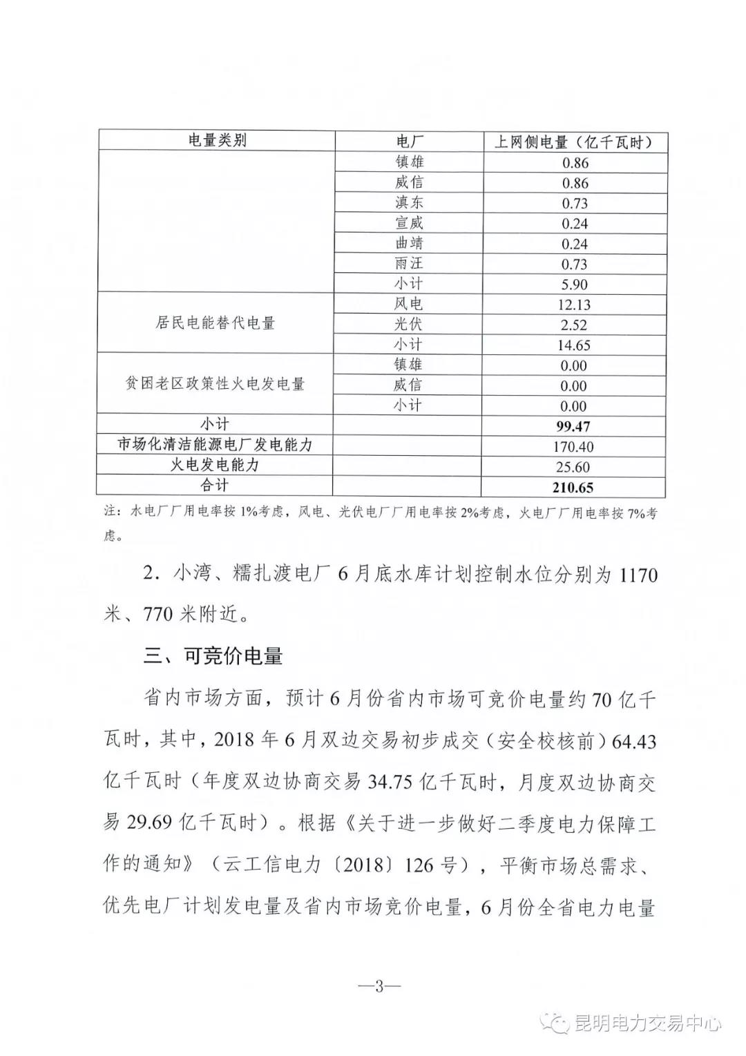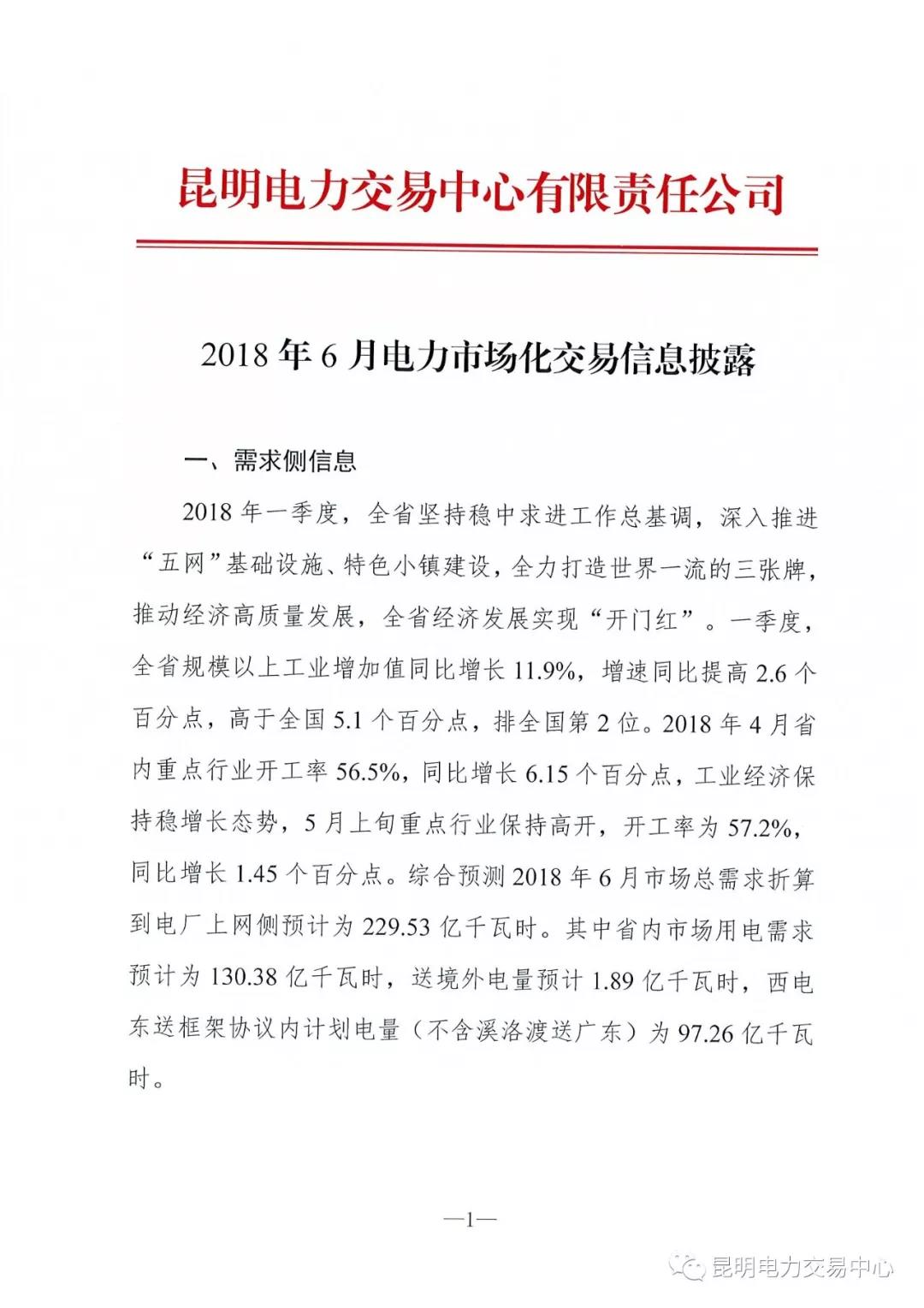 云南2018年6月電力市場化交易信息披露:省內(nèi)市場可競價電量約70億千瓦時