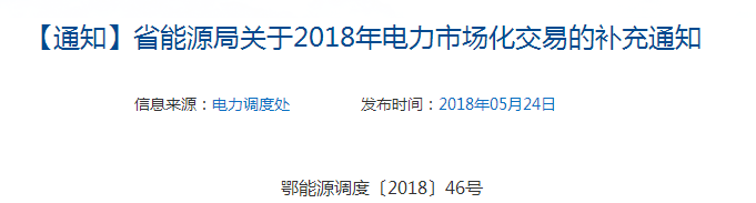 湖北關(guān)于2018年電力市場化交易的補(bǔ)充通知:2018年保函額度不低于50萬元