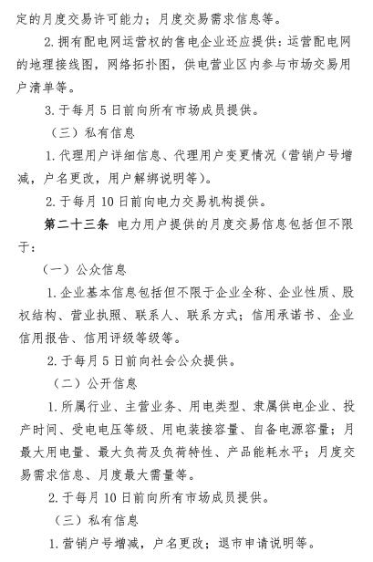 新疆能監(jiān)辦日前發(fā)布了關(guān)于印發(fā)《新疆區(qū)域電力市場信息披露實施細則(試行)》的通知,電力交易機構(gòu)、售電企業(yè)半年度報告和年度報告分別于當年9月底前和次年3月底前向所有市場成員提供。