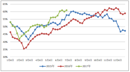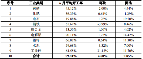 分行業(yè)來看,上半年,一系列供給側(cè)改革政策的發(fā)布不斷推高鋁價(jià),省內(nèi)電解鋁企業(yè)在客觀利潤的刺激下,開工積極性高漲,行業(yè)開工率達(dá)到 90%。鋼鐵行業(yè)受國家去產(chǎn)能政策、國內(nèi)大量基礎(chǔ)設(shè)施建設(shè)項(xiàng)目獲批的雙重利好影響下,年后開始鋼材價(jià)格持續(xù)上漲,鋼鐵行業(yè)開工率也持續(xù)走高,達(dá)到 60%,為近三年來同期最高水平。水泥行業(yè)受全省固定資產(chǎn)投資持續(xù)增長帶動(dòng),春節(jié)后開工率持續(xù)攀升,4 月份開工率達(dá)到 68%,為近三年同期最高。黃磷行業(yè)雖然受上半年原料成本上漲影響,但在電力市場化改革紅利持續(xù)釋放下,今年以來開工率仍整體好于去年,最高開工率達(dá)到了 50%。鐵合金、化肥行業(yè)自 2015年以來受下游產(chǎn)品價(jià)格持續(xù)疲軟的影響,鐵合金、化肥行業(yè)開工率一直保持低位運(yùn)行。其他行業(yè)受電力市場改革紅利釋放的帶動(dòng),開工率普遍好于去年。