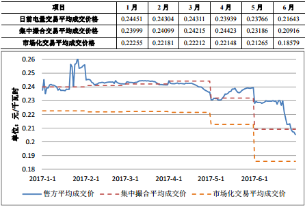表 3.16 2017 年上半年日前電量交易平均價格與市場化交易平均價格對比