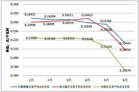 價格方面,日前電量交易作為對年度、月度各交易品種的補充,成交價格變化趨勢與集中撮合交易和月度平均成交價變化趨勢一致。