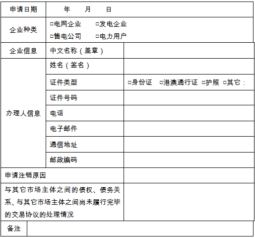 冀北發(fā)布電力市場主體注冊、信息變更、注銷申請書模板