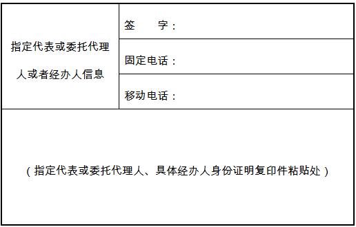 4.指定代表或者委托代理人可以是自然人,也可以是其他組織;指定代表或者委托代理人是其他組織的,應(yīng)當(dāng)另行提交其他組織證照復(fù)印件及其指派具體經(jīng)辦人的文件、具體經(jīng)辦人的身份證件。