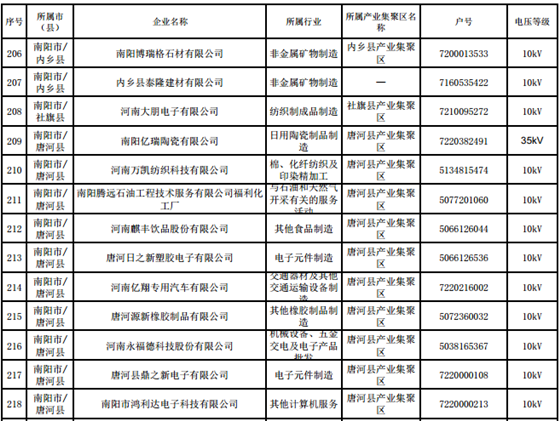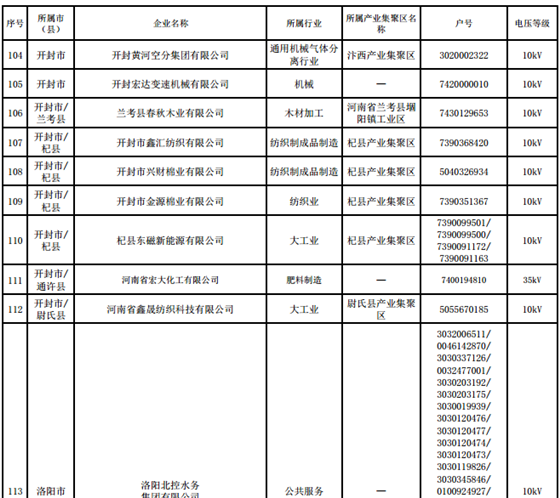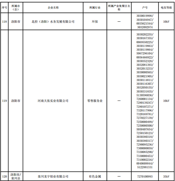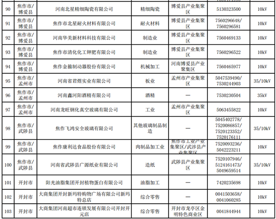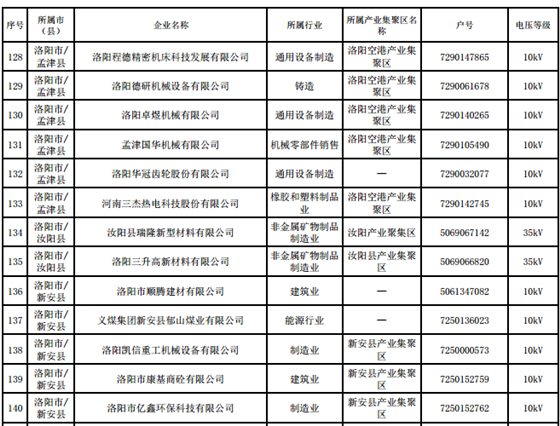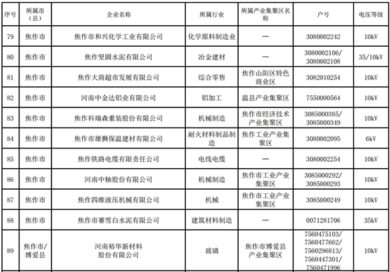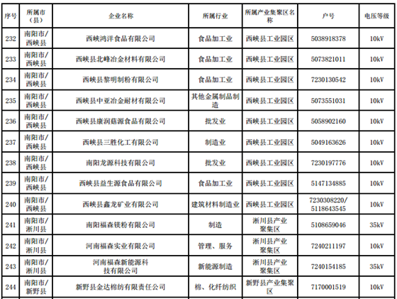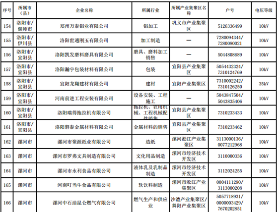 河南第四批新增608家電力用戶公示名單