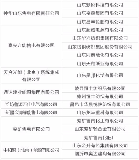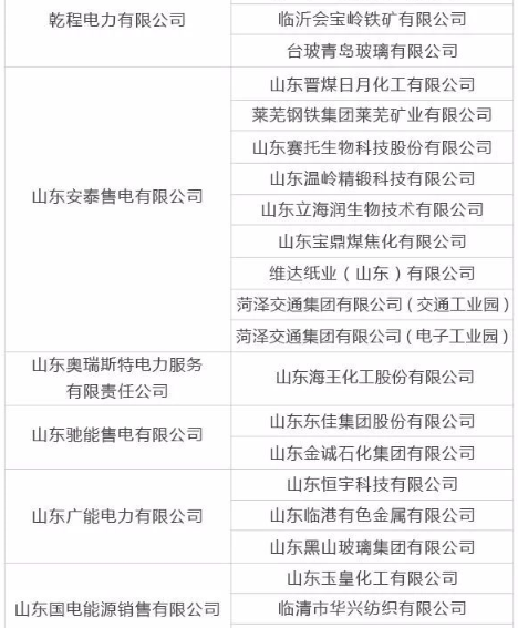 山東售電公司與跨省區(qū)電力直接交易用戶代理關(guān)系及自主參加交易的電力用戶名單