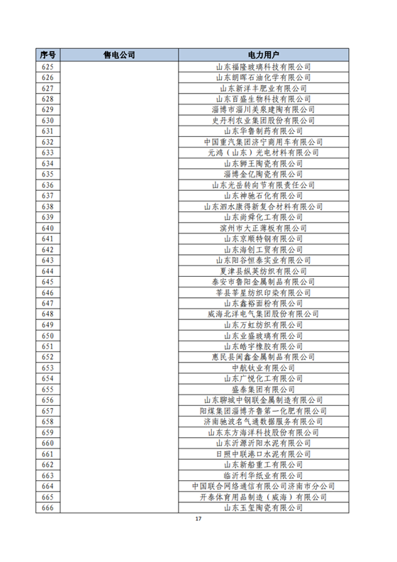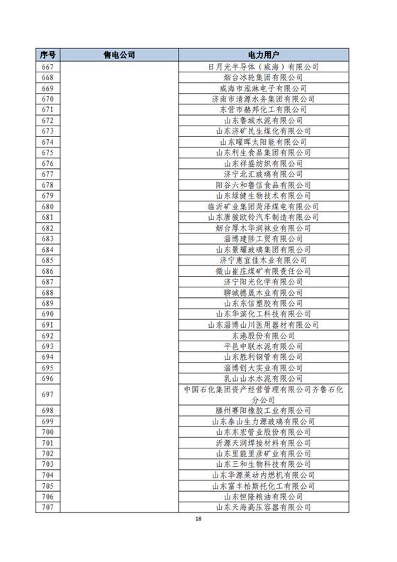 山東2018年省內電力交易用戶與售電公司代理關系及自主參與直接交易用戶名單