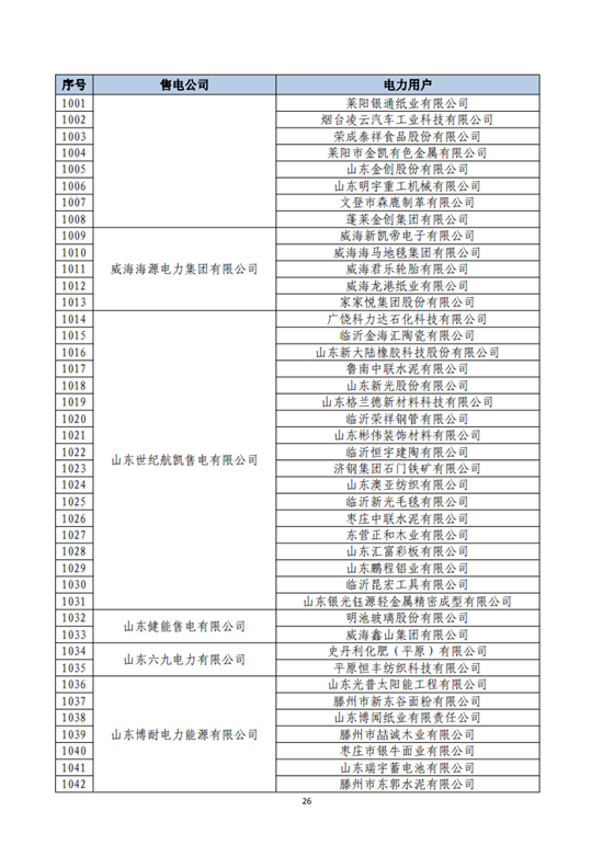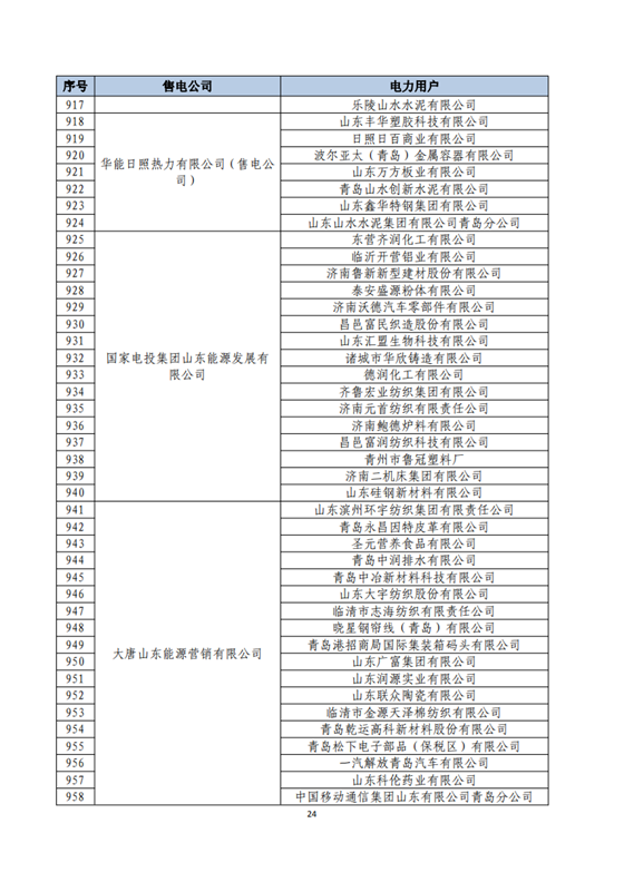 山東2018年省內(nèi)電力交易用戶與售電公司代理關系及自主參與直接交易用戶名單