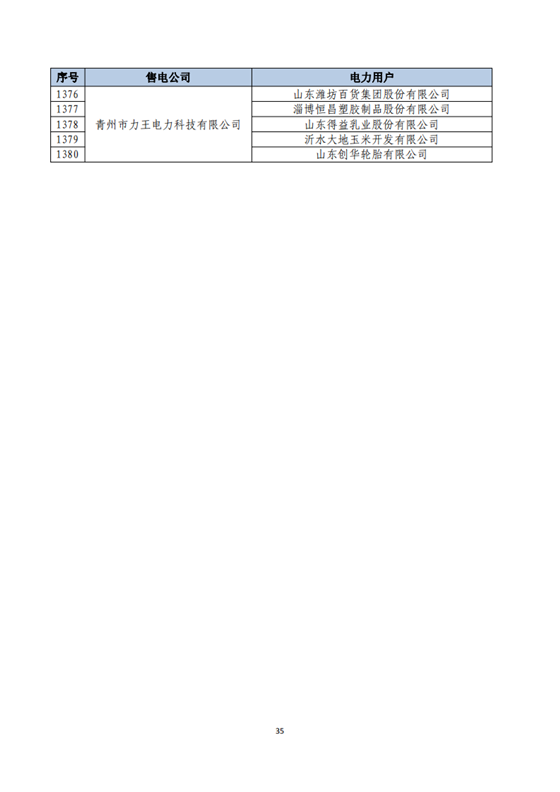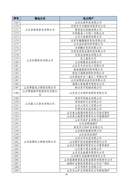 山東2018年省內(nèi)電力交易用戶與售電公司代理關(guān)系及自主參與直接交易用戶名單