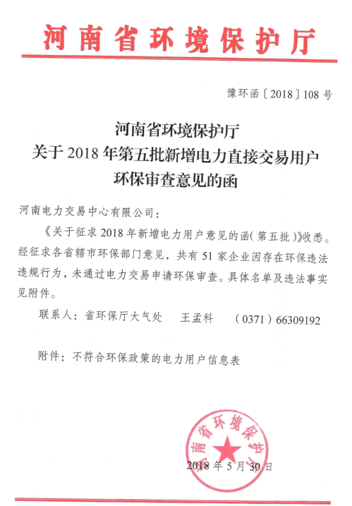 河南電力交易中心日前發(fā)布了《2018年第五批準(zhǔn)入( 具備交易資格 )電力用戶名單公告》,新鄉(xiāng)市潔神凈化有限公司等51家電力用戶存在環(huán)保問(wèn)題
