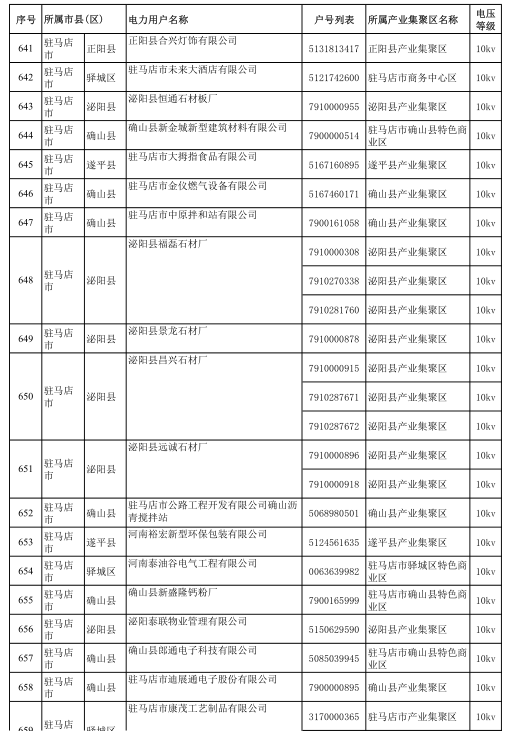 河南2018年第五批準(zhǔn)入(具備交易資格)660家電力用戶名單