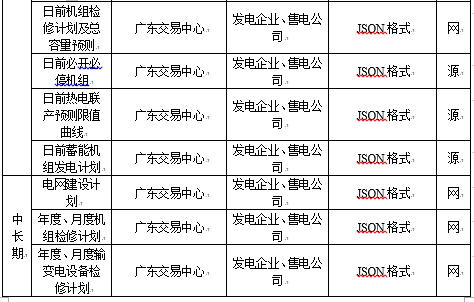 電力交易系統(tǒng)交互數(shù)據(jù)根據(jù)業(yè)務(wù)類型主要分為基礎(chǔ)數(shù)據(jù)、日前預(yù)測數(shù)據(jù)、中長期計劃數(shù)據(jù)、日前申報數(shù)據(jù)、交易結(jié)果數(shù)據(jù)、實時交易數(shù)據(jù)、實際運行數(shù)據(jù)等。如下表: