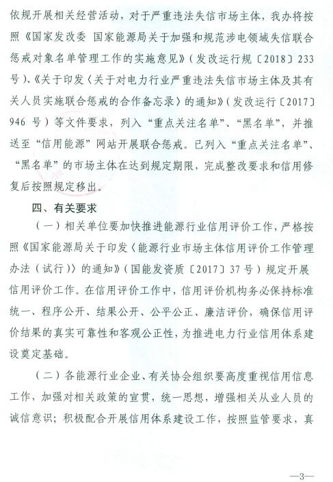 各能源行業(yè)企業(yè)、有關(guān)協(xié)會(huì)組織要按照監(jiān)管要求,真實(shí)完整的報(bào)送安全生產(chǎn)、工程建設(shè)、市場(chǎng)交易、節(jié)能環(huán)保等領(lǐng)域涉及信用的信息。