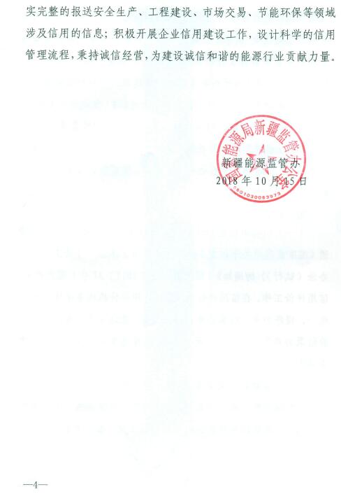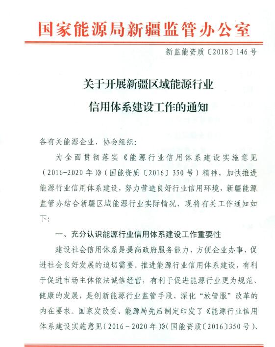 新疆能監(jiān)辦日前發(fā)布了《關(guān)于開展新疆區(qū)域能源行業(yè)信用體系建設(shè)工作的通知》,指出在信用評(píng)價(jià)工作中,信用評(píng)價(jià)機(jī)構(gòu)務(wù)必保持標(biāo)準(zhǔn)統(tǒng)一、程序公開、結(jié)果公開、公平公正、廉潔評(píng)價(jià),確保信用評(píng)價(jià)結(jié)果的真實(shí)可靠性和客觀公正性,為推進(jìn)電力行業(yè)信用體系建設(shè)奠定基礎(chǔ)。