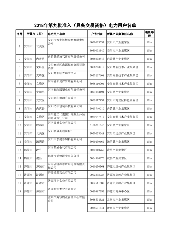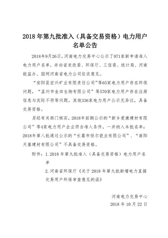 河南新增第九批準(zhǔn)入(具備交易資格)340家電力用戶(附名單)