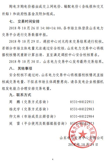本次交易采取集中競價交易方式。2018年10月26日14:00~16:00,各市場主體登錄山東電力交易平臺進行交易數(shù)據(jù)申報。