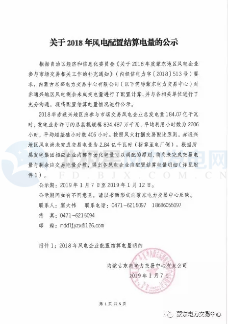 蒙東電力交易中心近日發(fā)布關(guān)于2018年風(fēng)電配置結(jié)算電量的公示,公示期為1月7日-1月12日。公示顯示,2018年合計(jì)應(yīng)結(jié)算電量為