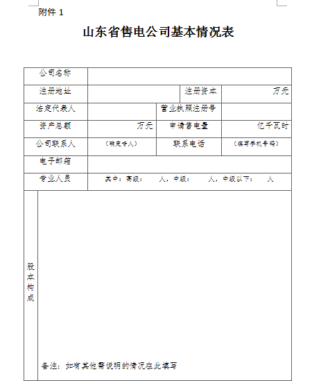 經我委與省政府有關部門、單位會商研究,進一步細化售電公司上報材料和準入要求(詳見附件2和附件3)。之前已報送我委和各市經濟和信息化委的企業(yè),如上報材料符合本通知要求,請致電我委和各市經濟和信息化委確認,由我們統(tǒng)一轉送山東電力交易中心,不需再重新提報材料,各市經濟和信息化委不需對材料內容進行初審;不符合要求的,重新準備上報材料后直接報送山東電力交易中心。