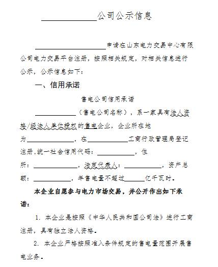 山東電力交易中心要按照國家相關規(guī)定,組織人員對企業(yè)上報材料進行嚴格審核。經審核材料齊全、符合要求的售電公司,按照“一注冊、一承諾、一公示、三備案”程序實施管理,公示信息參照附件4。為便于銜接、加快推進相關工作,所有售電公司上報時一并填寫公示信息,與上報材料一并報送山東電力交易中心。公示結束后,山東電力交易中心向社會公布準入的售電公司目錄。