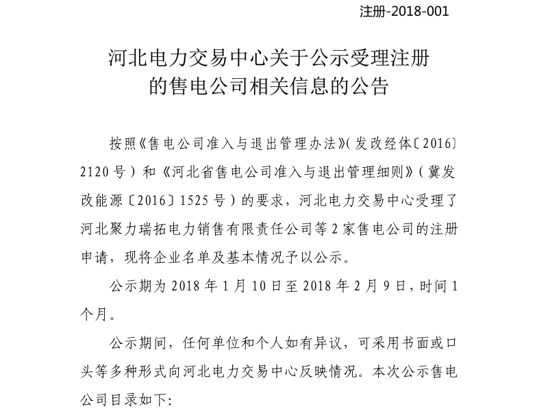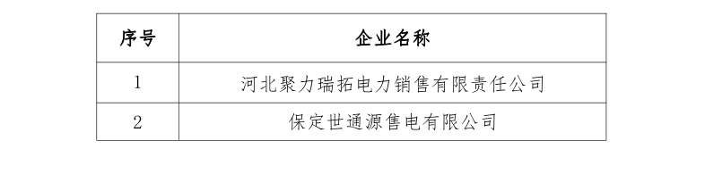 河北新公示26家售電公司注冊及3家售電公司業(yè)務(wù)范圍變更