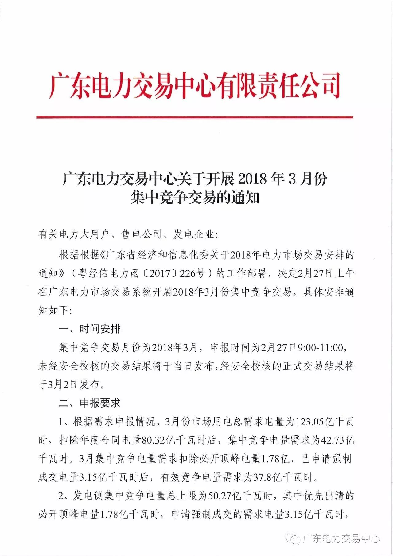 廣東電力交易中心日前發(fā)布了《關(guān)于開展2018年3月份集中競爭交易的通知》,通知中稱,將于2月27日上午在廣東電力市場交易系統(tǒng)開展2018年3月...