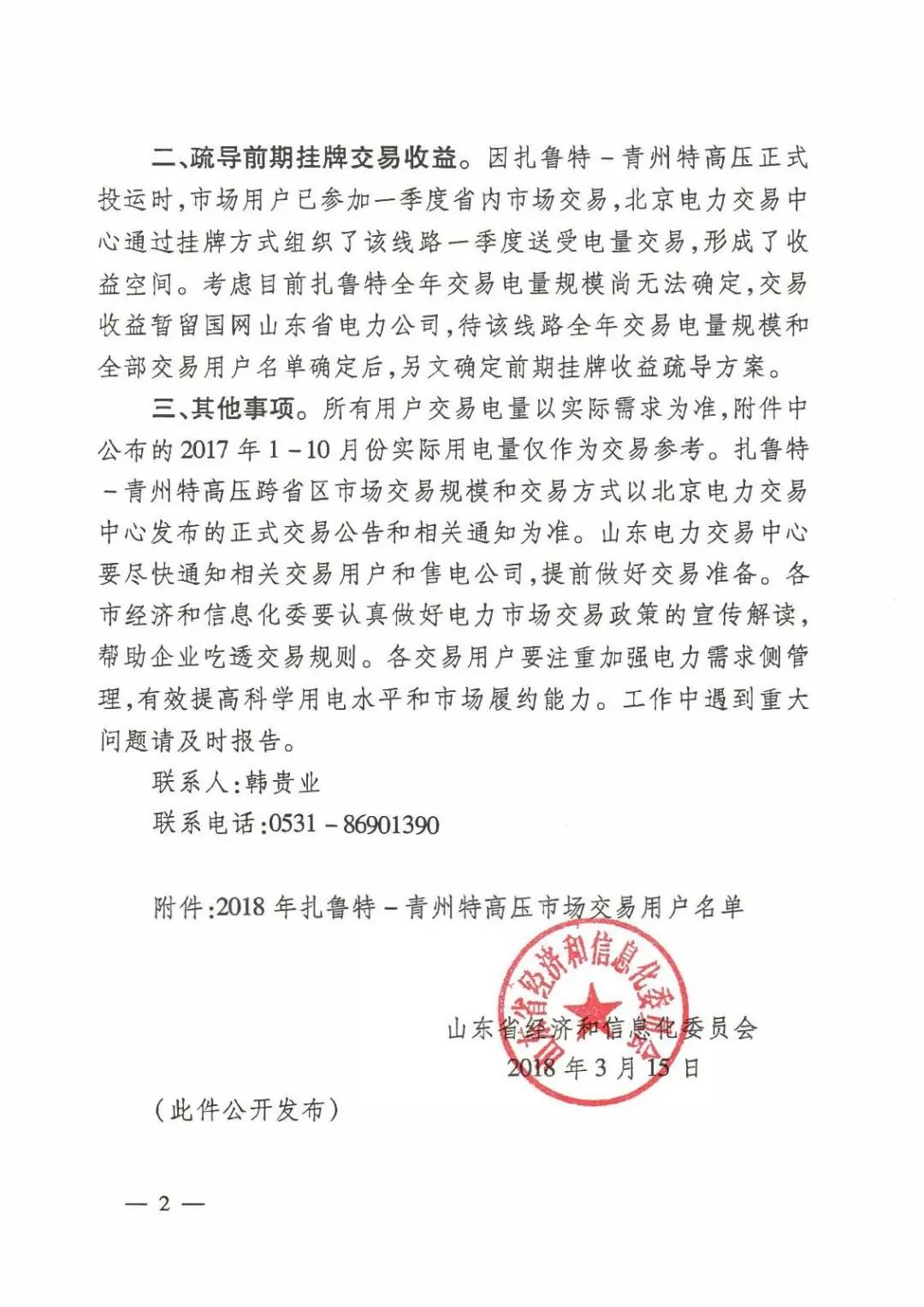 通知中稱(chēng),考試目前扎魯特全年交易電量規(guī)模尚無(wú)法確定,交易收益暫留國(guó)網(wǎng)山東省電力公司,待該線路全年交易電量規(guī)模和全部交易用戶(hù)名單確定后,確定前期掛牌收益疏導(dǎo)方案。