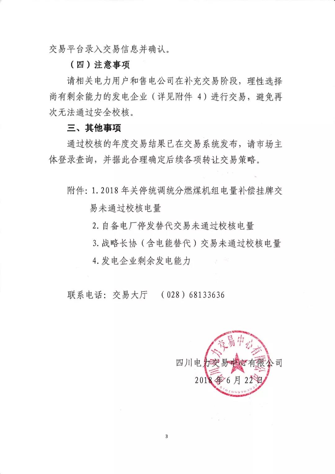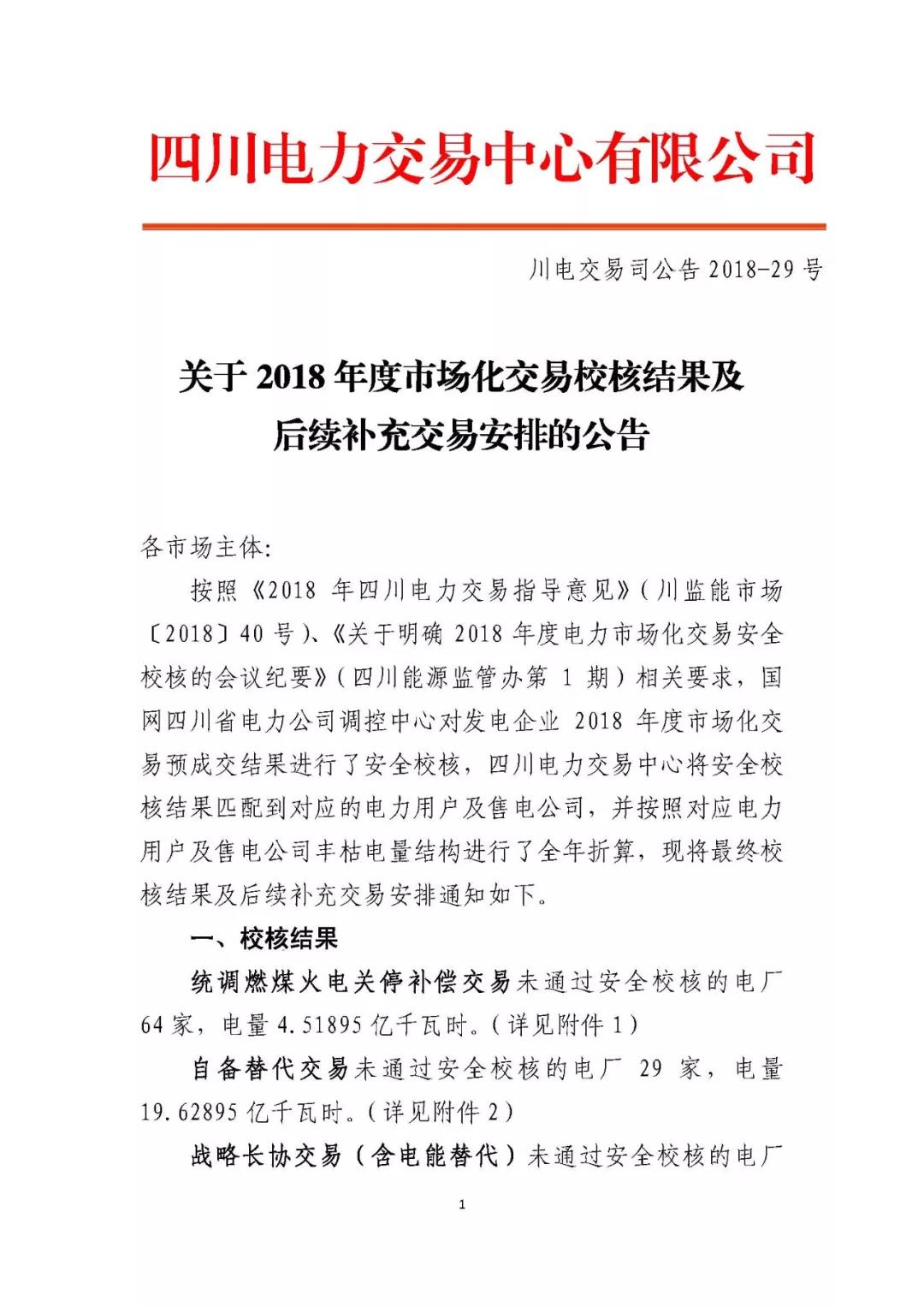 四川關(guān)于2018年度市場(chǎng)化交易校核結(jié)果及后續(xù)補(bǔ)充交易安排的公告