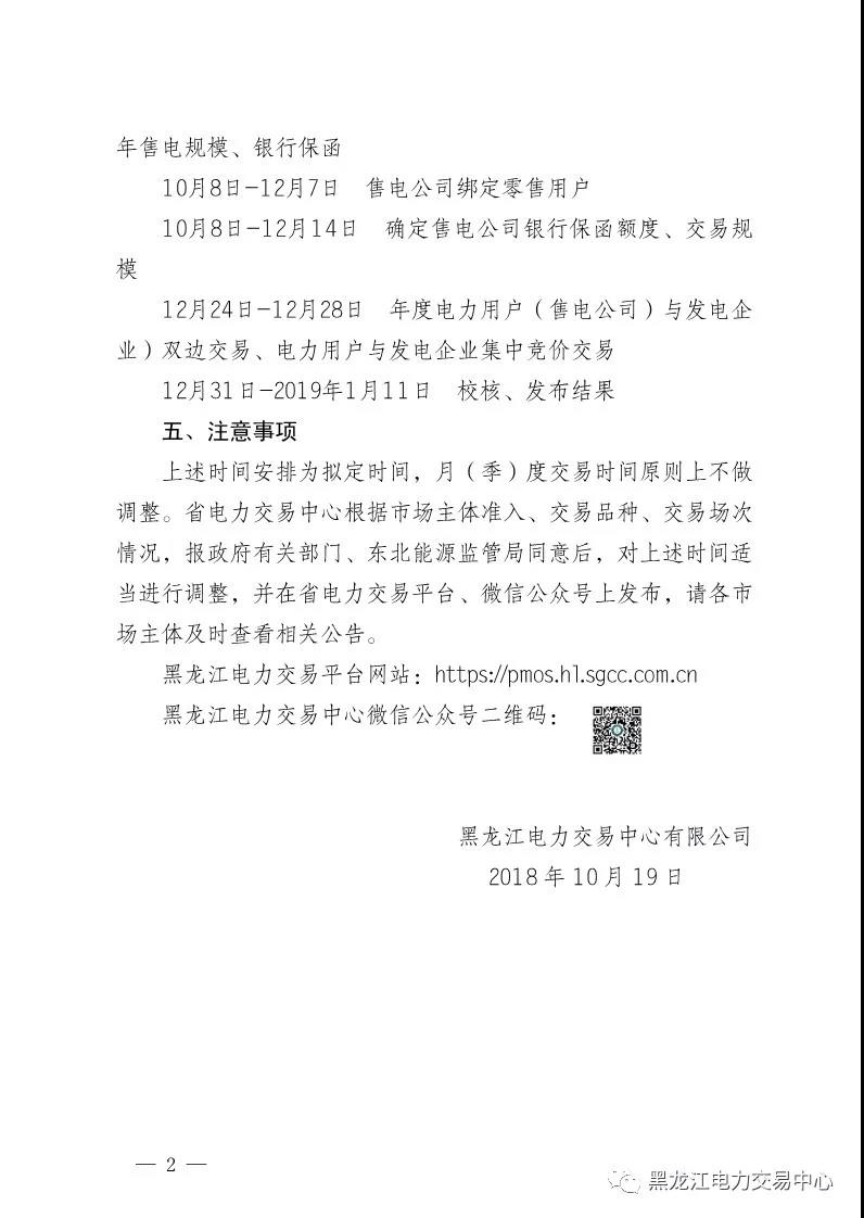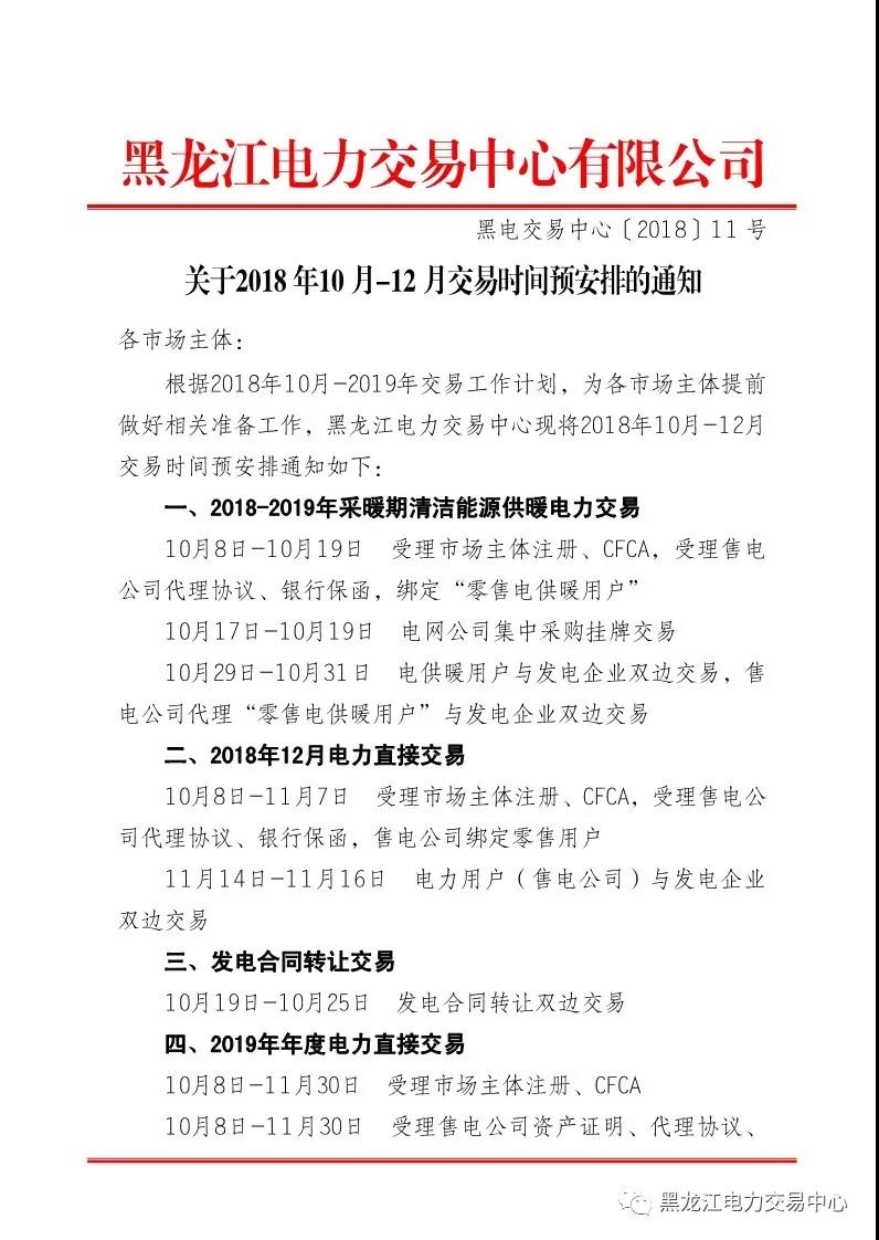 黑龍江關(guān)于2018年10月-12月交易時間預(yù)安排的通知