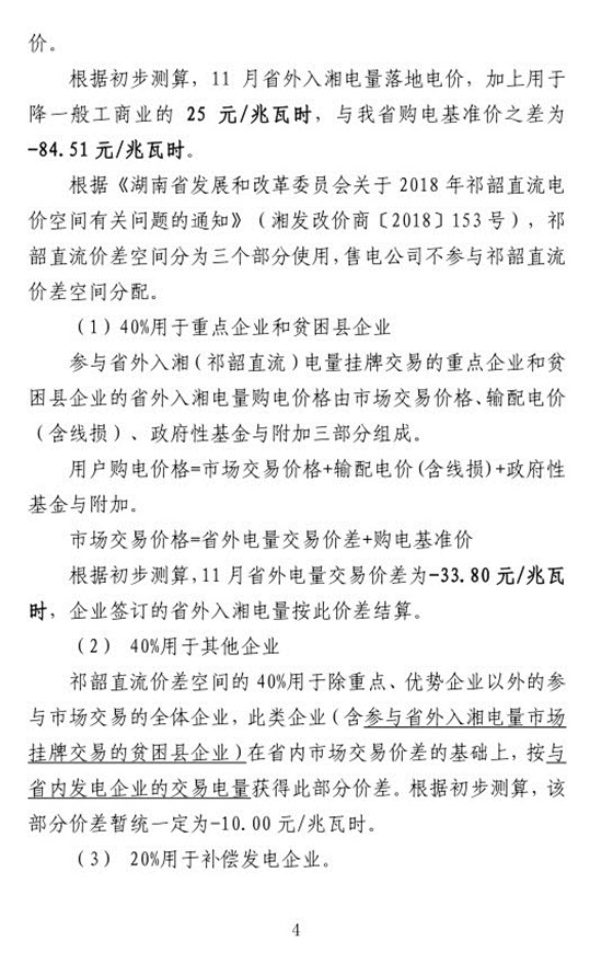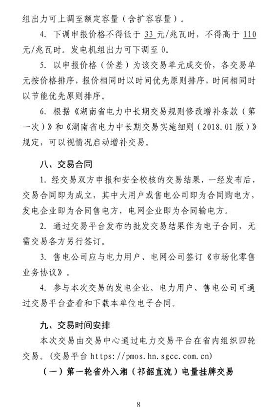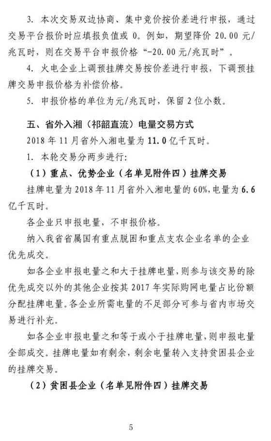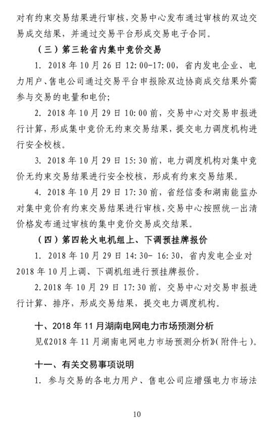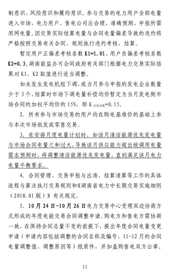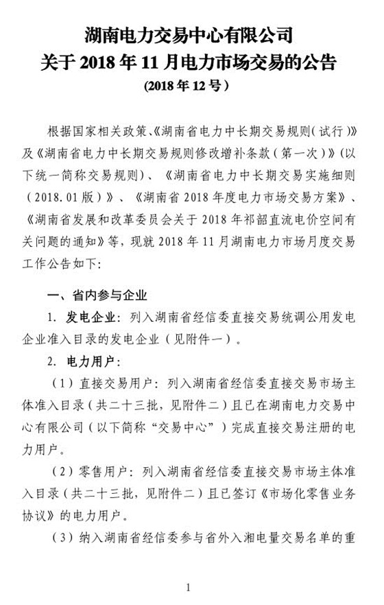 湖南2018年11月電力市場交易:火電下調(diào)申報價格不得低于3.3分/千瓦時