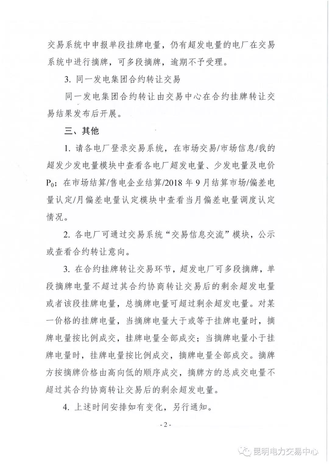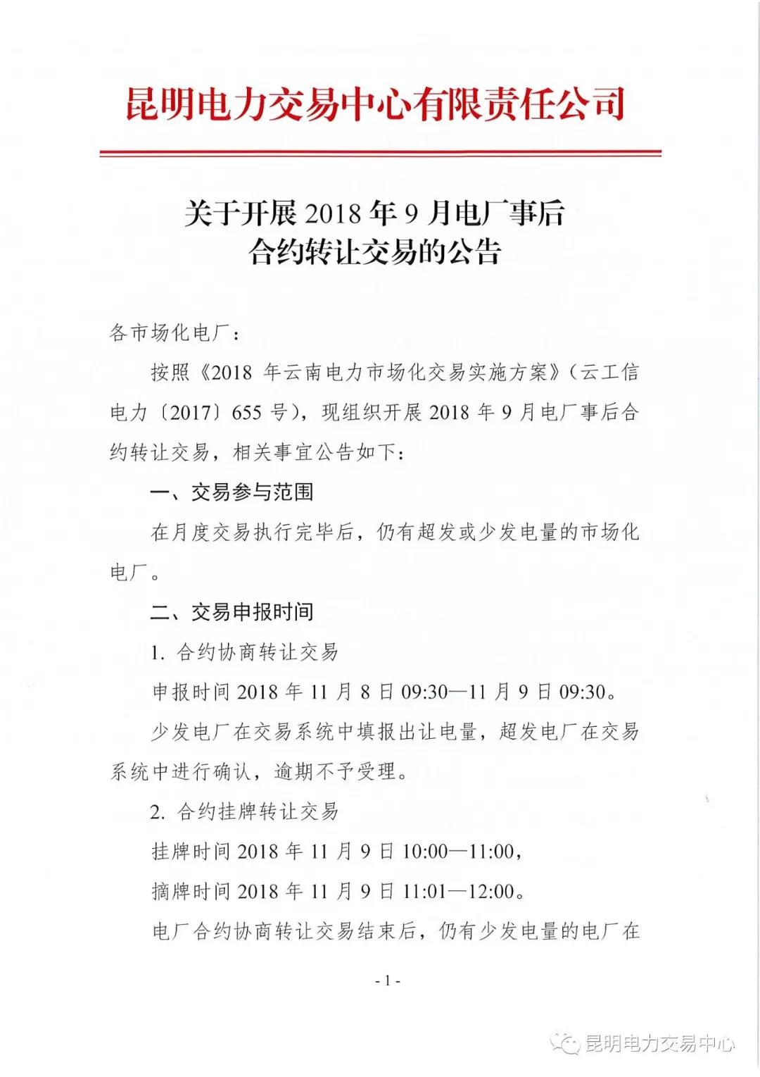 云南關于開展2018年9月電廠事后合約轉讓交易的公告