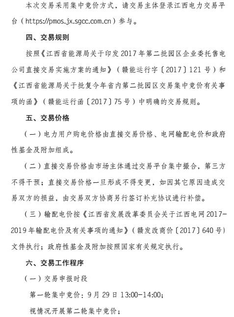 交易方式:本次交易采用集中競(jìng)價(jià)方式,請(qǐng)交易主體登錄江西電力交易平臺(tái)參與。