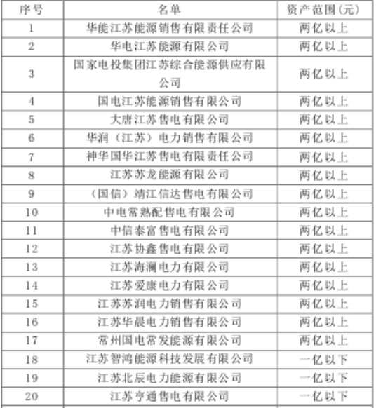 江蘇第一批36家售電公司成功入場(chǎng)!25家資產(chǎn)范圍2億!