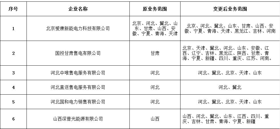 北京電力交易中心關(guān)于公示受理業(yè)務(wù)范圍變更的12家售電公司相關(guān)信息的公告