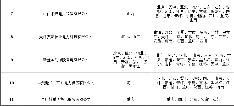 公示期間,任何單位和個人如有異議,可采用書面或口頭等多種形式向北京電力交易中心反映情況。本次公示售電公司目錄如下: