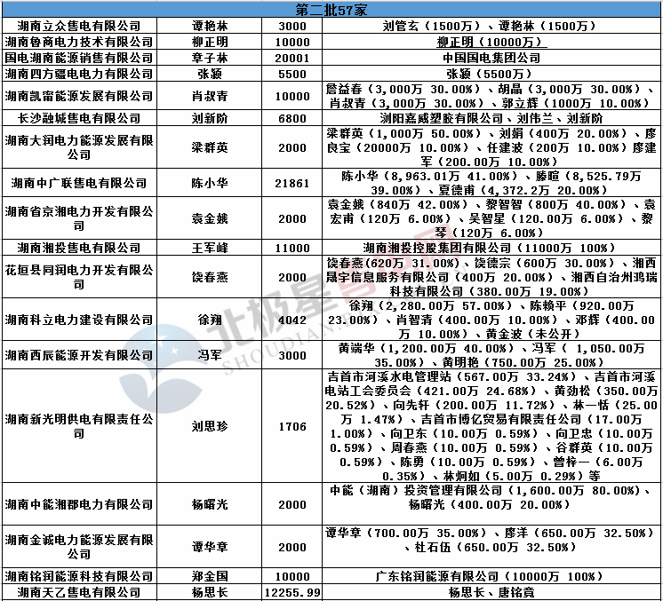 在此次公示的57家企業(yè)中,小編注意到,此次入圍的售電企業(yè)身份多樣,煤炭、水利、科技、鋼鐵、電力參股的公司一應(yīng)俱全,為湖南的電力市場注入了新鮮的血液。