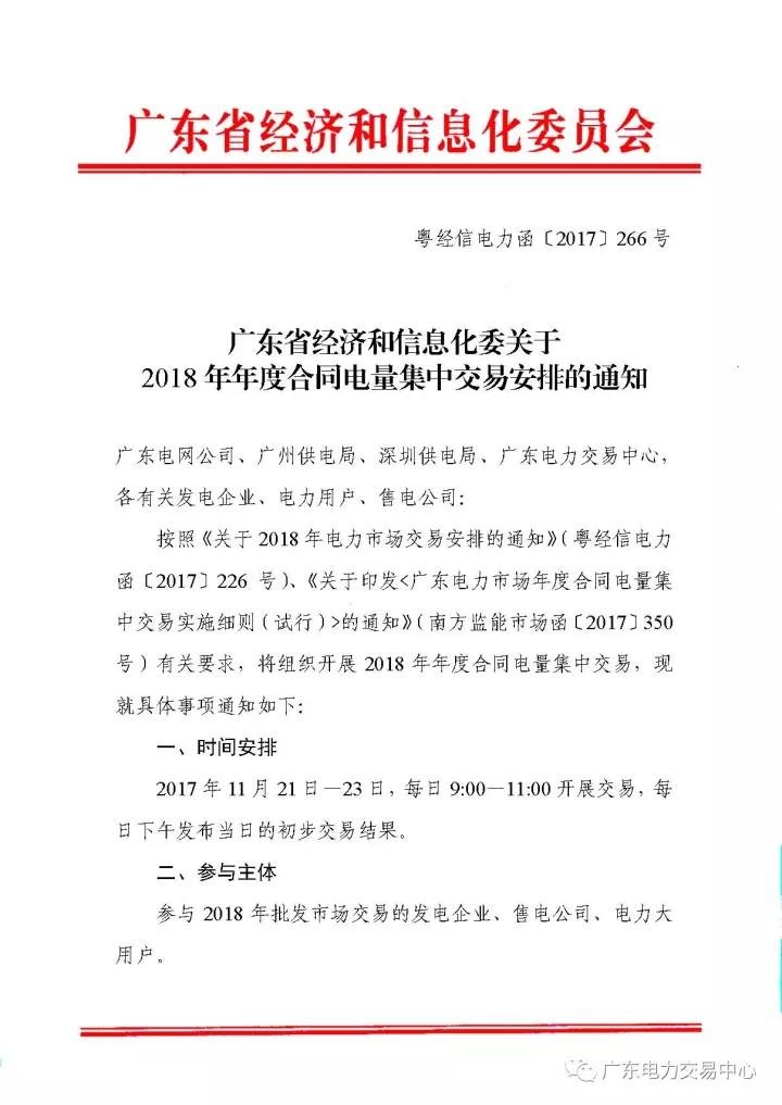 11月17日,廣東電力交易中心發(fā)布《2018年年度合同電量集中交易安排的通知》,通知稱11月21日至23日,每日9:00至11:00開展交易,最小交易單位電量為100萬千瓦時,交易規(guī)模100億千瓦時。
