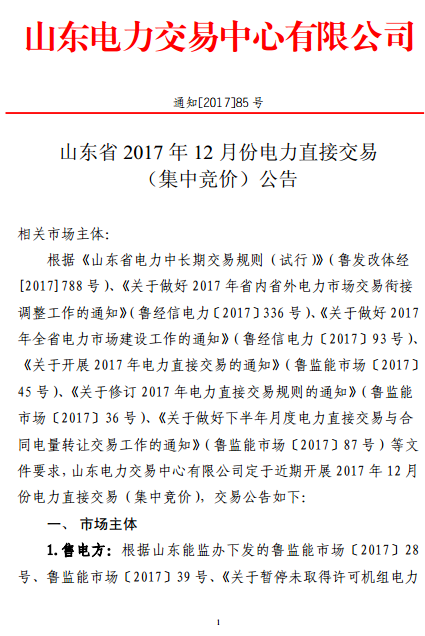 山東23日開(kāi)展12月份電力直接交易(集中競(jìng)價(jià))