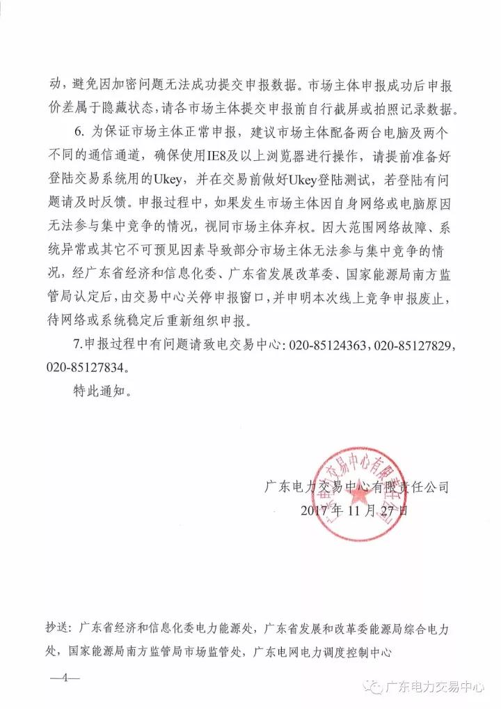 根據(jù)2017年12月份集中競(jìng)爭(zhēng)交易時(shí)間安排,廣東電力交易中心定于11月28日上午開展12月集中競(jìng)爭(zhēng)交易,具體事項(xiàng)安排如下: