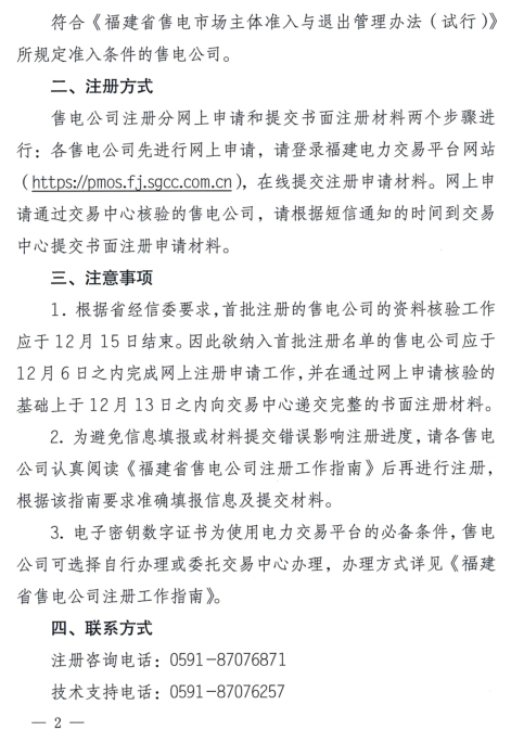 福建《關(guān)于開展售電公司入市注冊工作的通知》