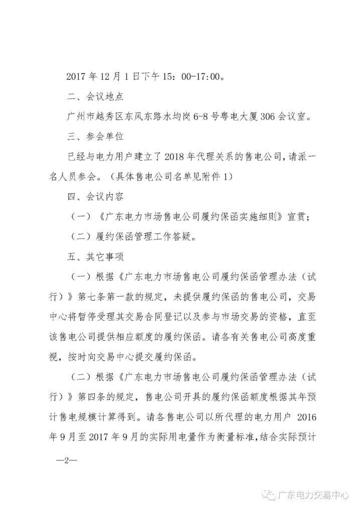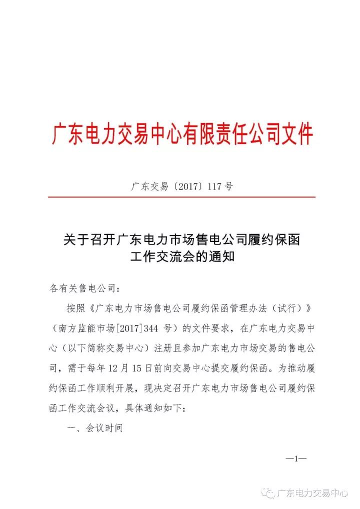 廣東電力交易中心日前發(fā)布了《《關(guān)于召開廣東電力市場售電公司履約保函工作交流會的通知》,通知中稱,為推動履約保函工作順利開展,決定于12月1日下午15:00-17:00召開廣東電力市場售電公司履約保函工作交流會