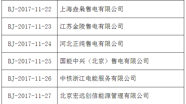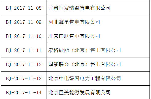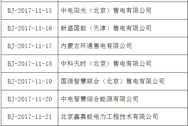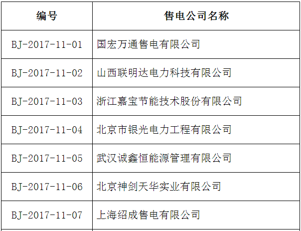 按照國家發(fā)改委、國家能源局《售電公司準(zhǔn)入與退出管理辦法》的要求,北京電力交易中心受理了下列售電公司的注冊申請,對售電公司提交的市場準(zhǔn)入申請材料進行了完整性核驗,現(xiàn)將企業(yè)名單及基本情況予以公示。