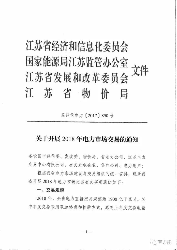 江蘇電力交易中心發(fā)布《關(guān)于開展2018年電力交易的通知》 江蘇2018市場開閘,全國最大規(guī)模電量放出